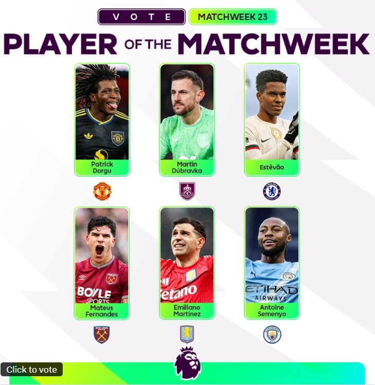1月27日讯 本轮英超战罢,英超官方也评选出本轮最佳球员候选名单,具体如下: